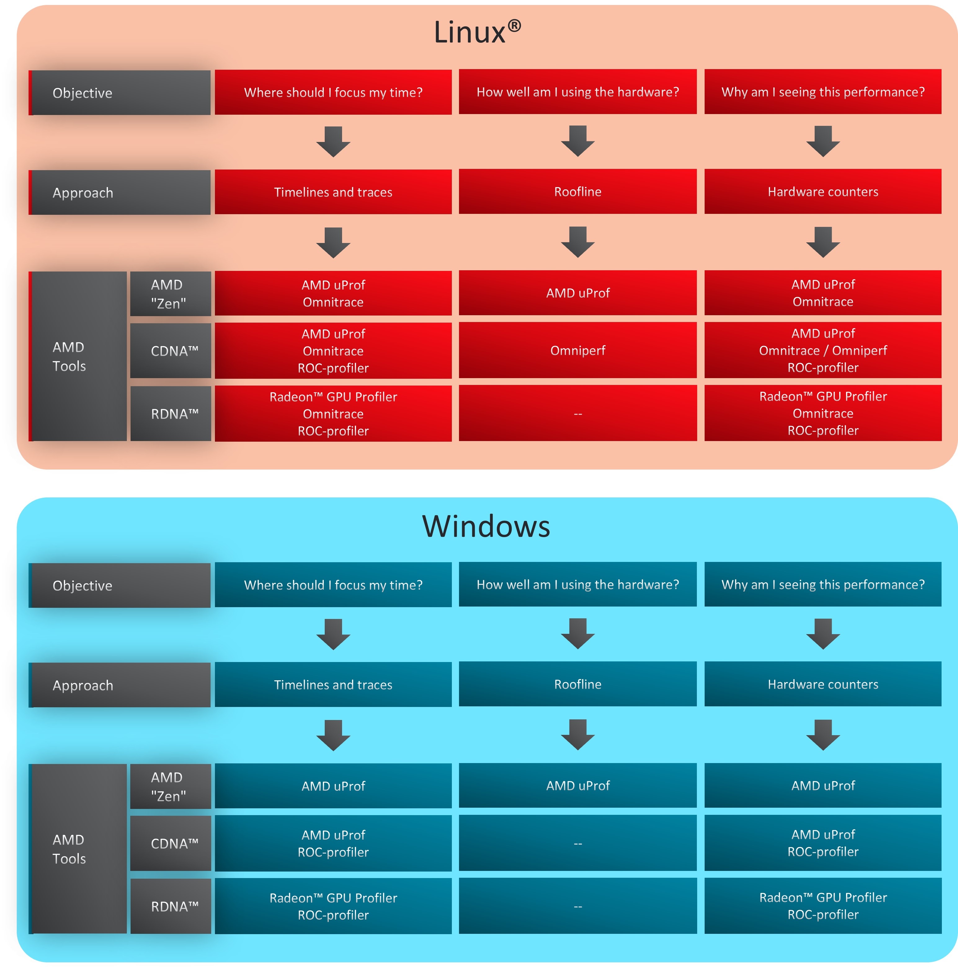 AMD Profiling Tools | AMD “Zen” Core | RDNA™ | CDNA™ | Windows | Linux® |