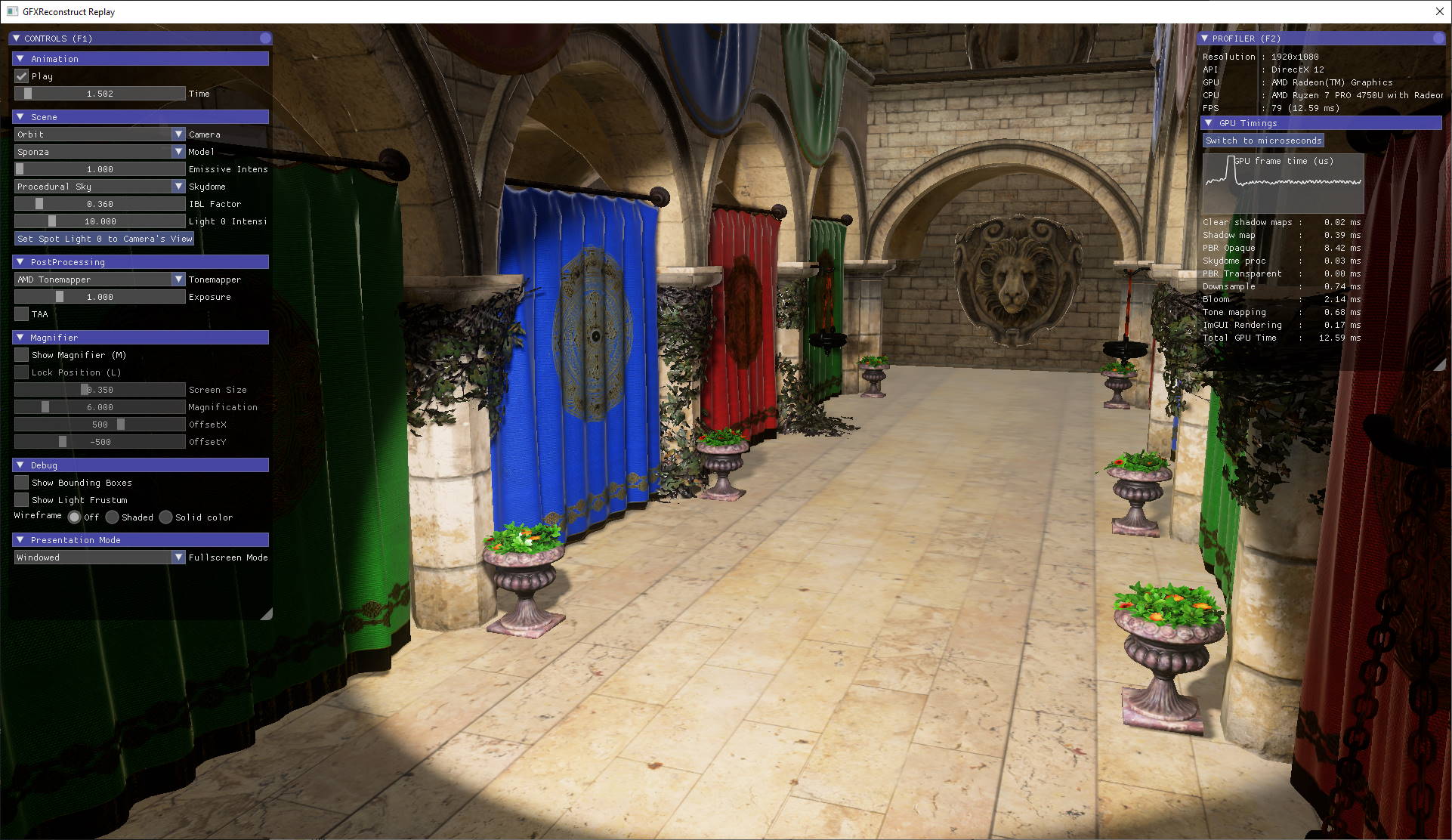 The GFXReconstruct package is a customizable Swiss army knife when it comes to capture/replay tools. On the capture side, GFXReconstruct provides proxy libraries that record graphics API calls to a capture file on disk. On the replay side, GFXReconstruct provides a series of command-line tools and scripts to read and process capture files.