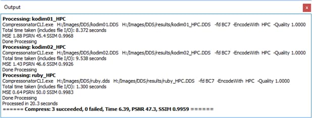 Compressonator is a set of tools to which make it easier for artists and developers to create compressed texture image assets and visualize the quality impact of various compression technologies. It consists of a GUI application, a command-line application, and an SDK for easy integration into a developer toolchain.