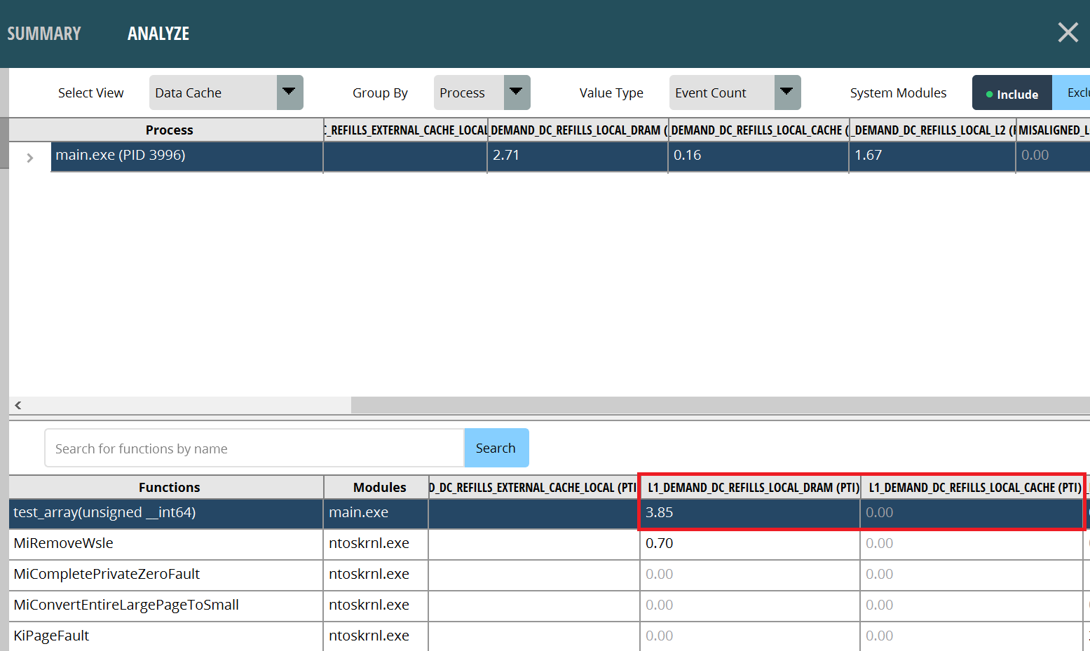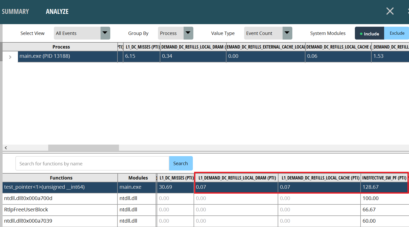 . The PTI suffix indicates that the data is normalized per thousand instructions. These names, of course, may vary in different versions of the performance analyzer. It hinges on the corresponding hardware PMC in the PPR.