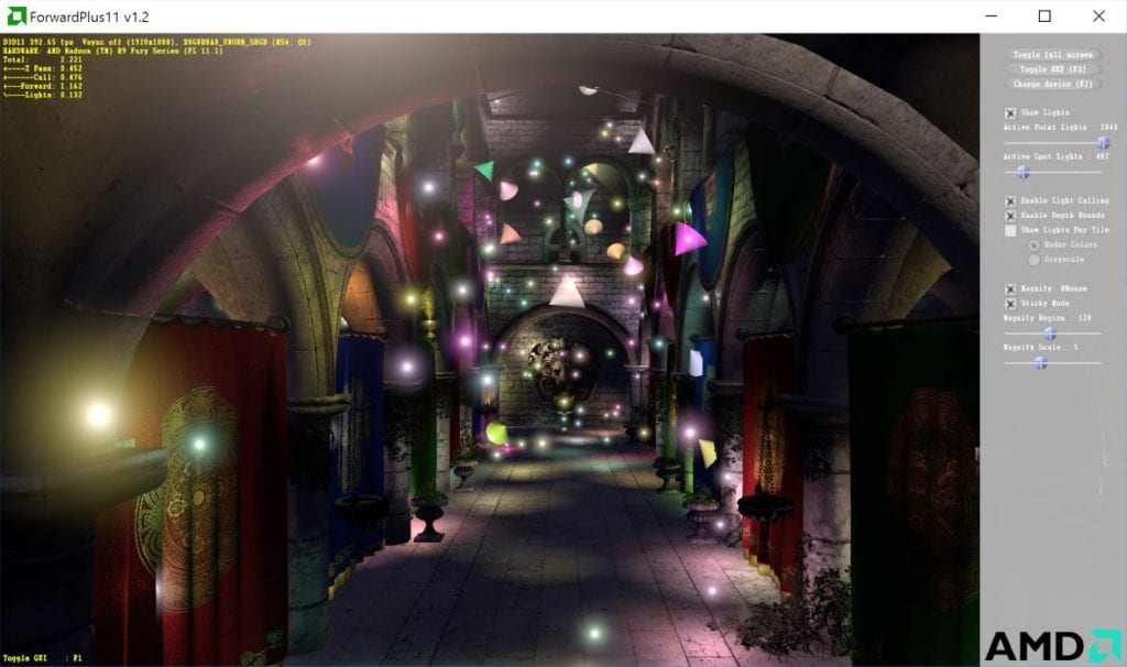 This sample provides an example implementation of the Forward+ algorithm, which extends traditional forward rendering to support high numbers of dynamic lights while maintaining performance.