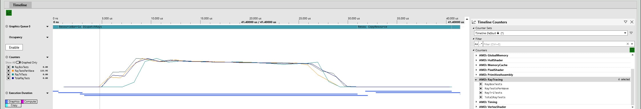 In addition to new discrete counters, we are adding High-Frequency counters for DirectX® Raytracing workloads as part of the AMD PIX Plugin in upcoming releases of Microsoft® PIX.