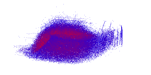 Firstly, for each particle, we traverse all the nearby particles within radius , fetch their positions, calculates the particle distances, and evaluate the particle density value using the below KDE formula with :