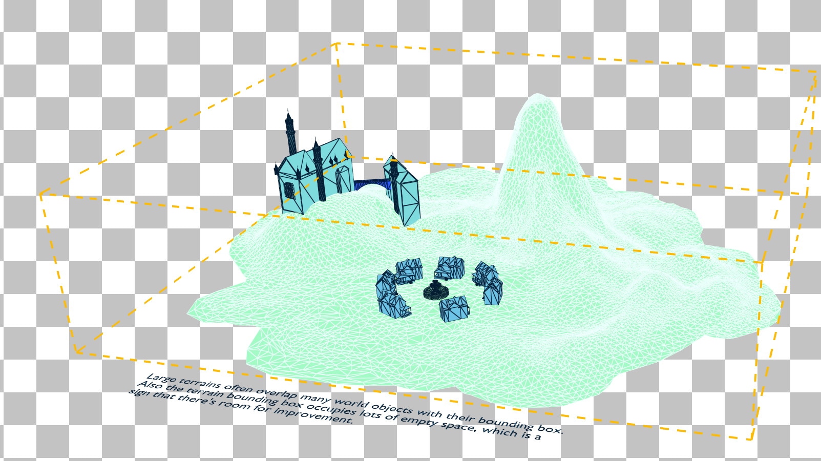 In the image above, we see that the houses and castle are completely enclosed by the terrain’s bounding box, which also occupies lots of empty space.
