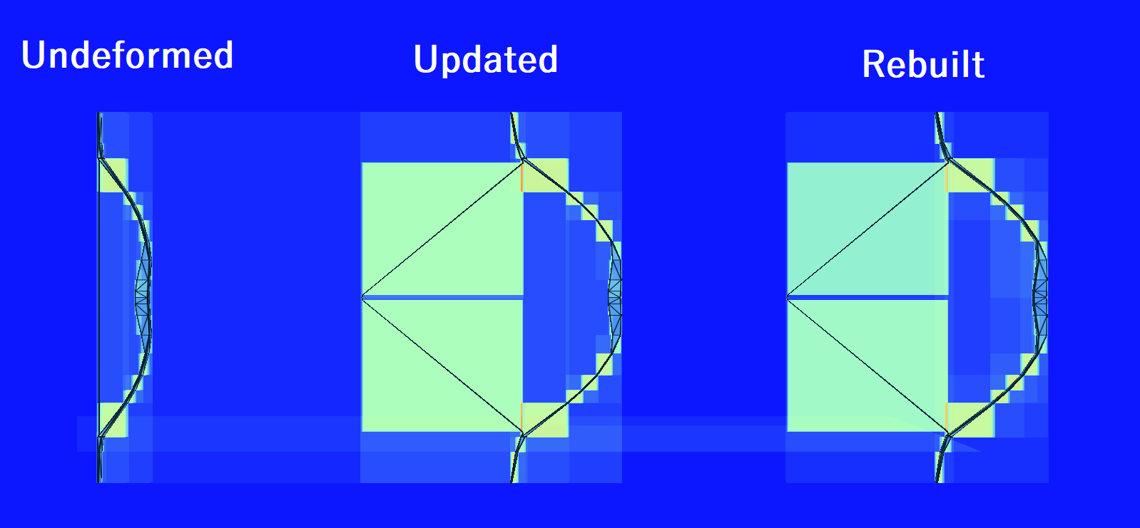 The good candidates for being updated have the property that triangles that are close together in the undeformed state stay close together in the deformed state. In practice, this will be smooth deformations like the stretching of a bow or the bending of an arm, but not deformations where triangles are torn apart, like the latch of a door or a cloth tearing.