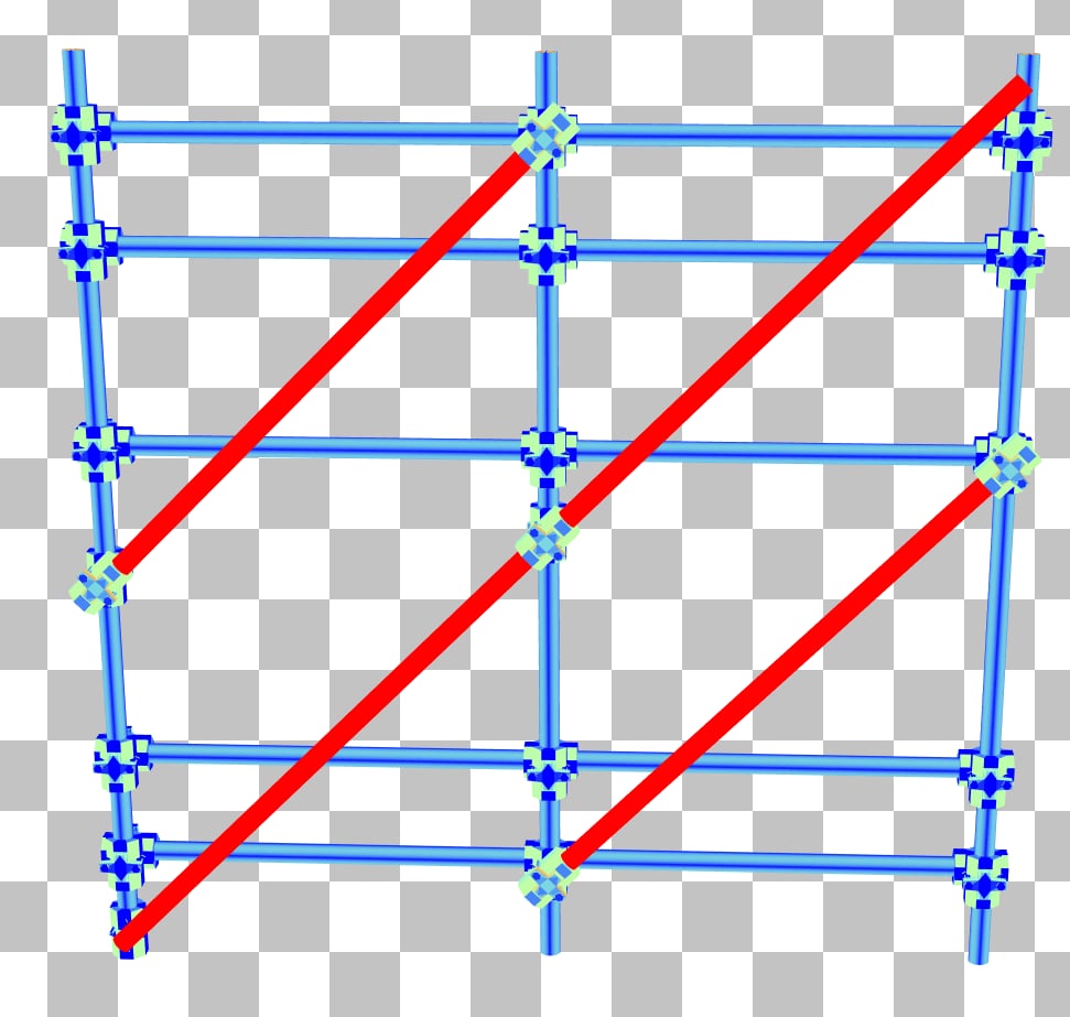 This can easily be improved by rotating the scaffolding mesh in BLAS space by 45 degrees so that the horizontal poles are aligned with the x-axis. This results in the following BLAS: