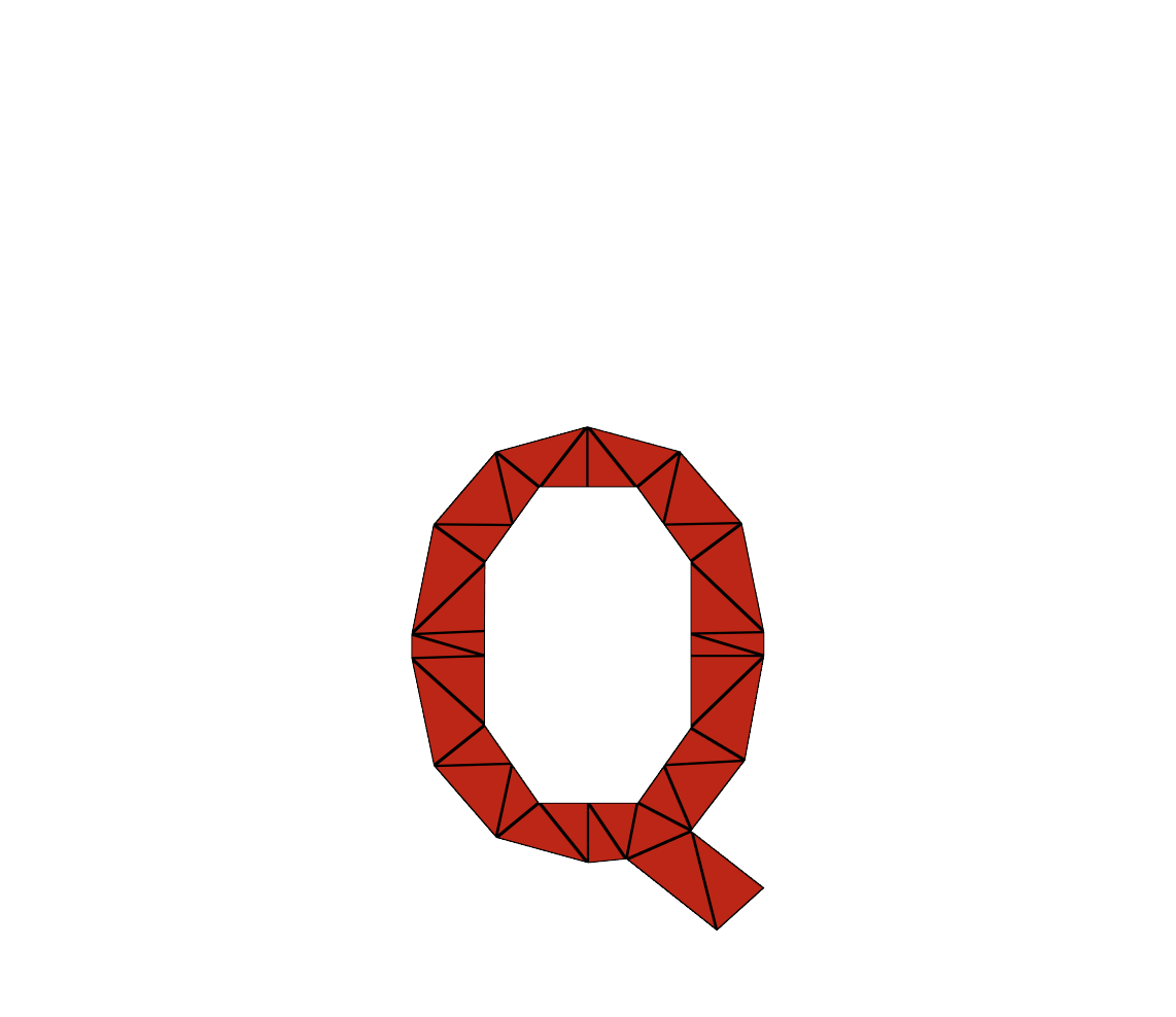 To get an “edgy” approximation of the glyph, we compute a triangulation of the point set {ai,bi,ci} under the following constraints: