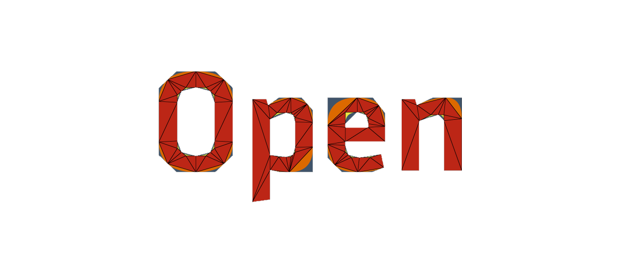 Before we go into the details of how to render the Bézier curves, let’s quickly outline how to find the solid triangles first. There, we use one of the many open-source packages that produce what is called a Constrained Delaunay Triangulation. They typically do standard convex Delaunay triangulations (left), can remove outside triangles (middle), and even detect holes (right). We use the latter one for fonts: