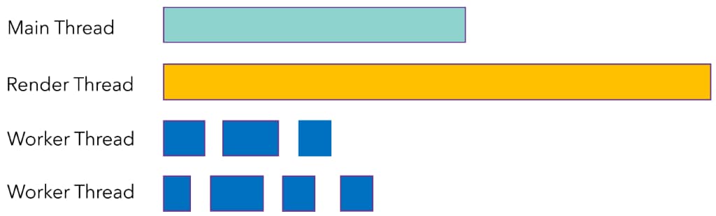 On PlayStation® 4, the draw calls are so fast that we use only one thread for them. This is our render thread. We have also a main thread and a few worker threads which perform various jobs.