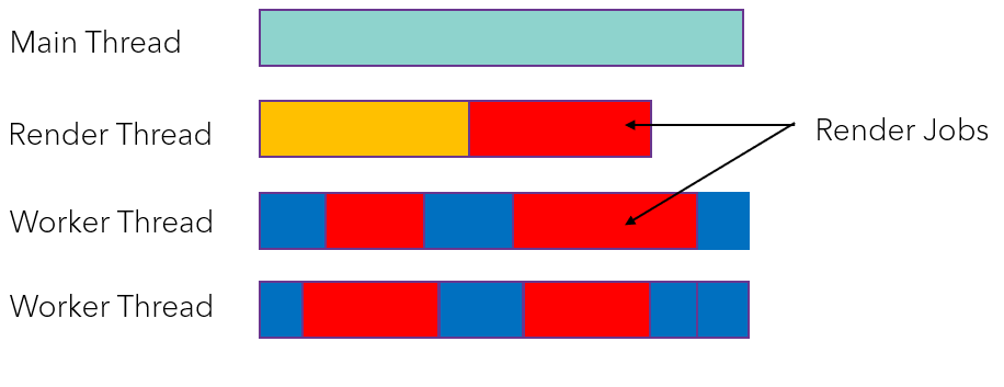 Each render list is handled by one or more jobs, depending on the number of draw calls.