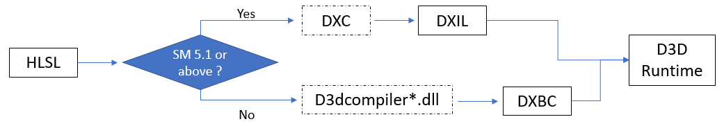 The following diagram shows the compilation process of an HLSL file in the DX12 mode: