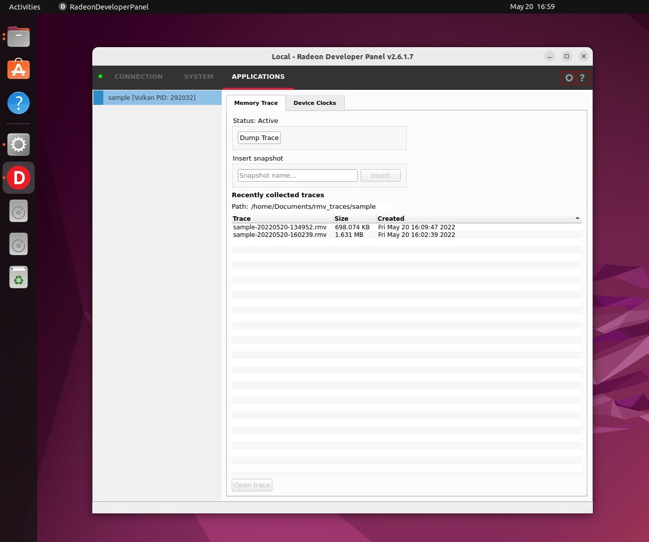The June 2022 release of the Radeon Developer Tool Suite, which includes the latest version of RMV, opens the door to memory analysis of Vulkan®-based applications running on Linux with Radeon hardware. Starting with version 2.6.1 of Radeon Developer Panel (RDP), memory traces of Vulkan applications running on the Linux platform can be captured.