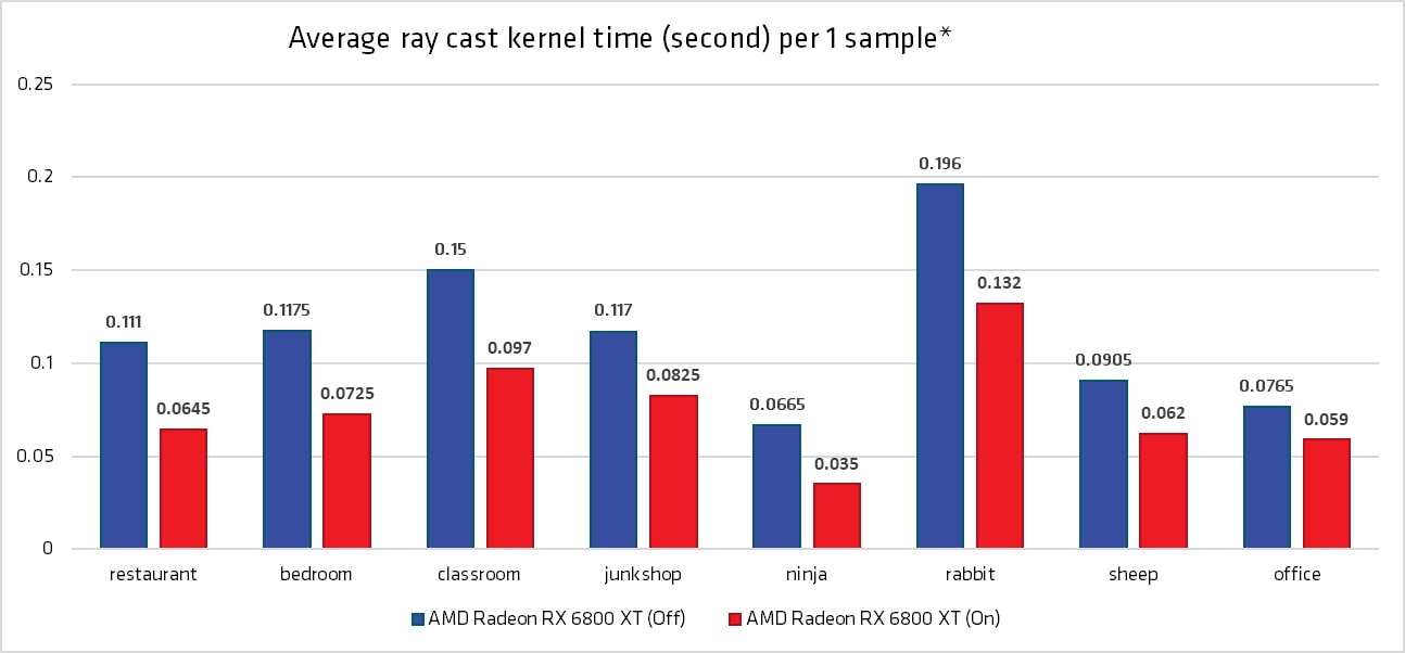 Now, with specific hardware acceleration features implemented, content creators can accelerate their rendering using AMD Radeon™ RX 6000 Series graphics cards. Here is how we enabled these gains in ray tracing speed in the AMD Radeon™ ProRender rendering engine.