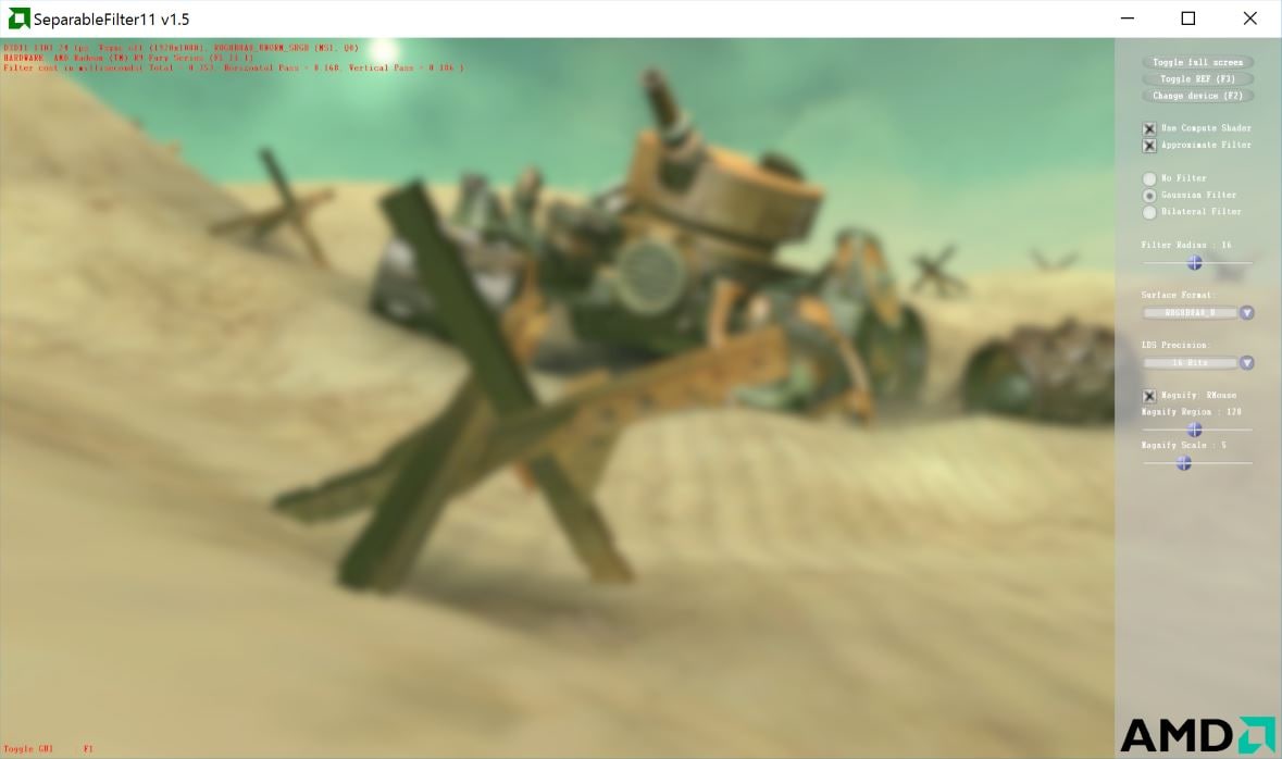 View SeparableFilter11 sample on GitHubIt utilizes Direct3D® 11 APIs and hardware to make use of DirectCompute 5.0 to greatly accelerate this common post processing technique.