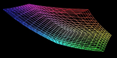 To do this, we needed to work in a color space where the distance between colors is somehow related to how perceptually similar they are. We chose to work in CIELAB since it’s a perceptually uniform color space (check out the first post in the series for more!). We can see below a visualization of a Toshiba monitor’s gamut volume in CIELAB, which is a similar volume to what you would see in sRGB.