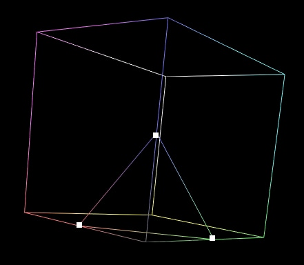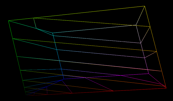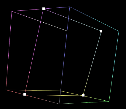 The current generated shape has straight lines connecting each point that go across entire cube faces, but the real gamut boundary may be curved in RGB, and not a straight line. To fix this, we need to better sample the gamut boundary across the cube’s faces, and we do this by generating lines across the cube faces as can be seen in the image below.