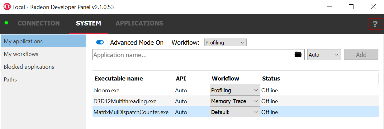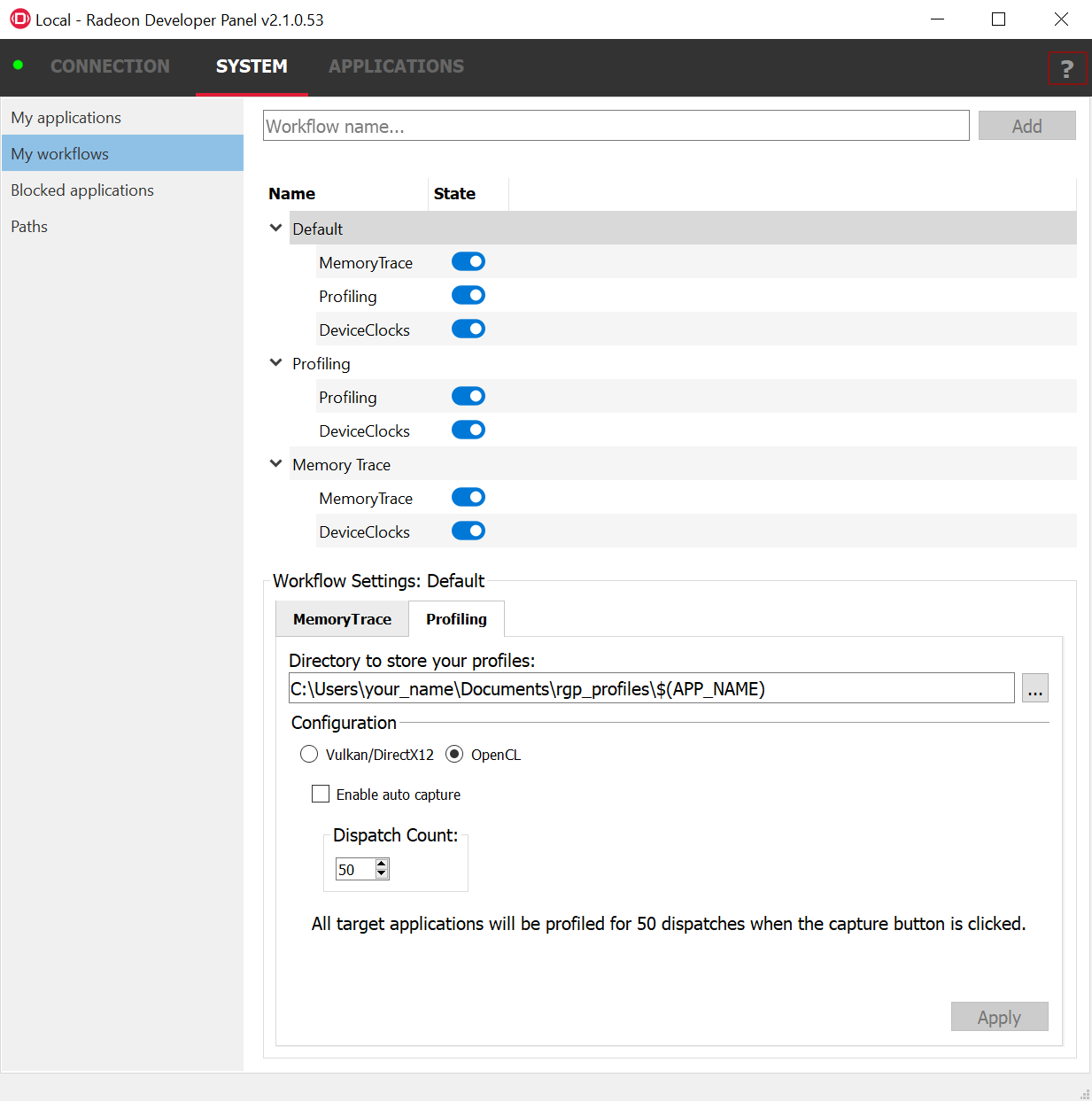 Workflows will become even more useful as we add more features to the Radeon™ Developer Panel in the future.