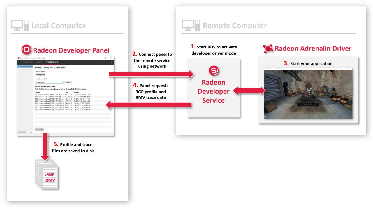To support remote connection a small executable called the Radeon™ Developer Service (RDS) must be running on the remote computer to provide the connection end point.