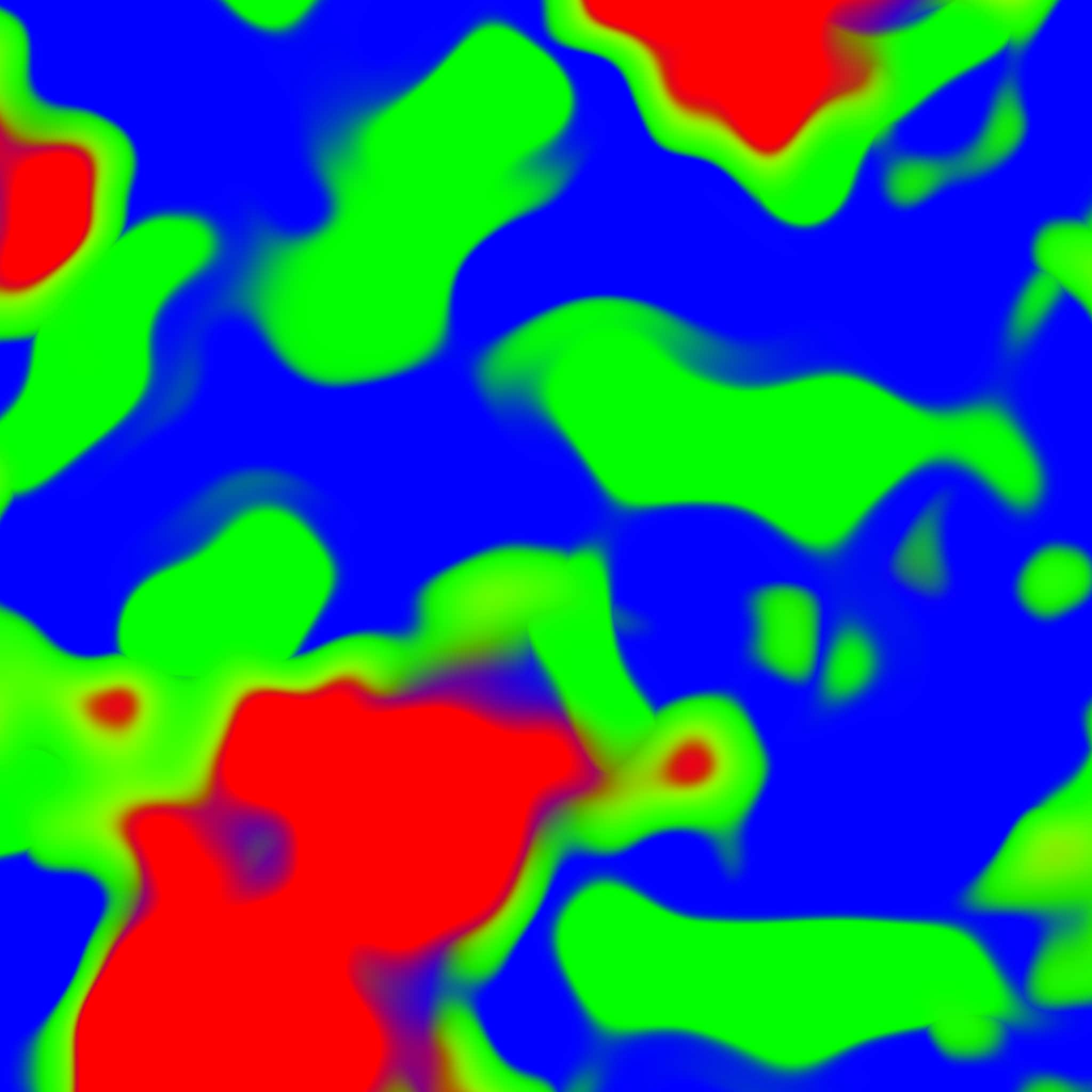 The result can be seen in the image on the right, with red representing the mountain biome, green representing the woodland biomes and blue the grassland biome.