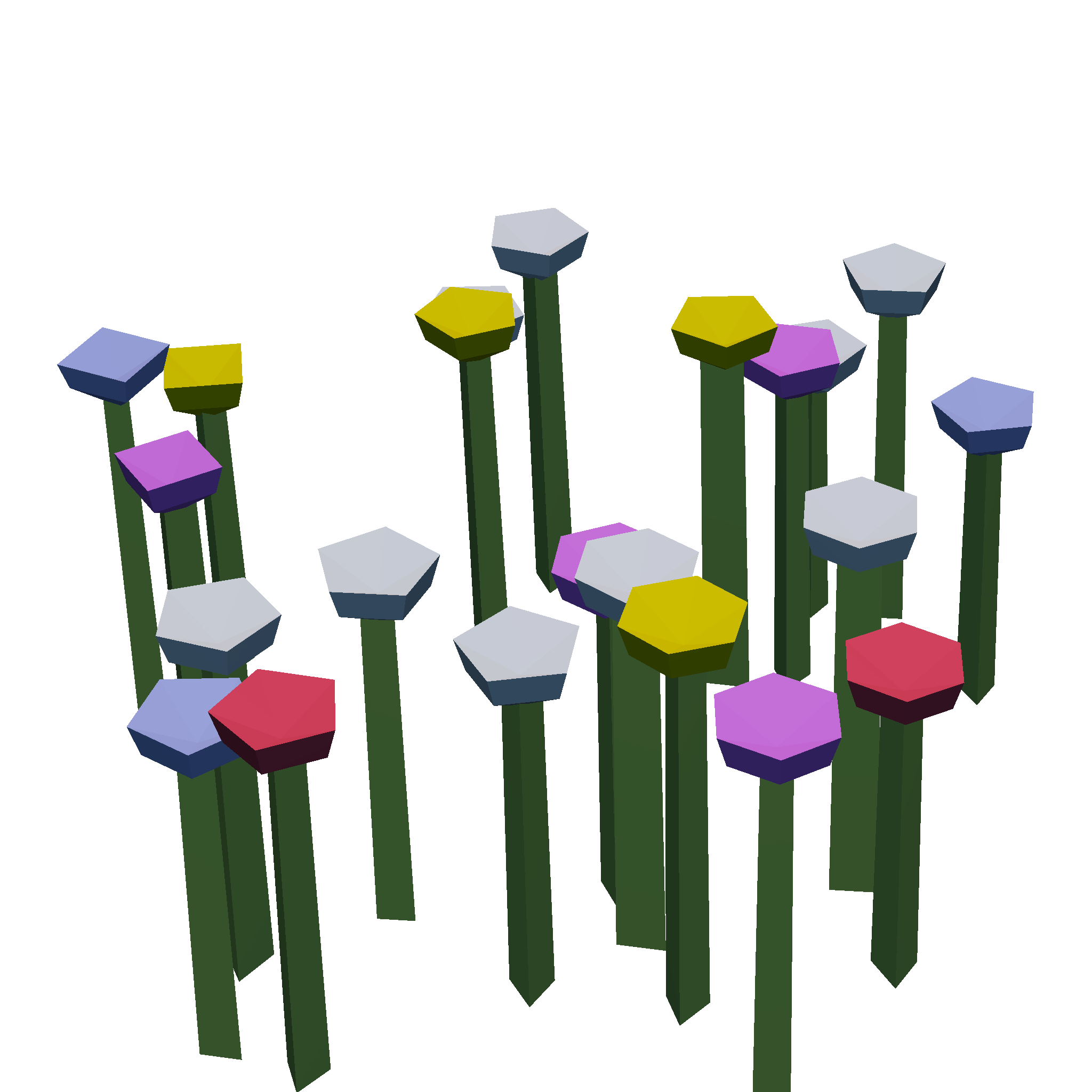 As described above, the procedural generation of the terrain mesh allows us to have different levels of detail. We can apply a similar concept to both the grass and flower generation in order to reduce the number of rendered triangles for distant objects.