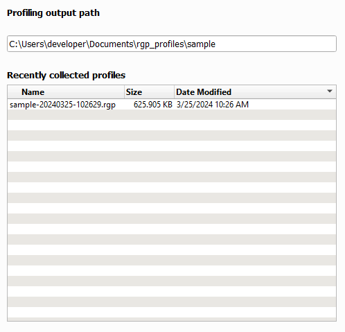 Profiles will be output on disk at the path specified in the Profiling output path field shown below.