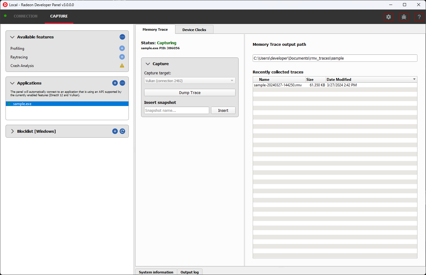 Using either of the above methods to complete memory tracing will result in a Radeon Memory Visualizer trace file being written to disk.