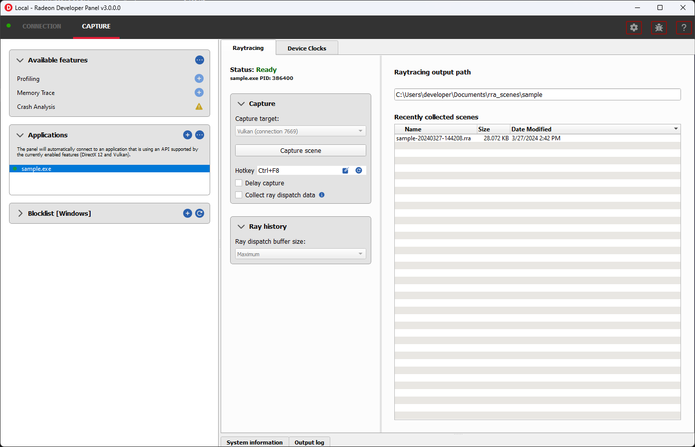 This feature enables capturing a raytracing scene for viewing in Radeon Raytracing Analyzer.