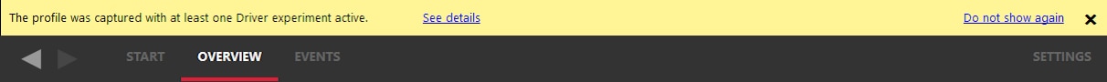 Experiments may be used as the only feature in Radeon Developer Panel or together with other features. For example, taking an RGP capture while experiments are activated will allow you to observe how the experiments influenced the performance of some specific render passes and draw calls. Alternatively, you may enable Crash Analysis feature and capture an RGD crash dump. Opening files captured with active driver experiments in their respective tools will display a notification that the file was captured with some driver experiments applied, and lists their values.