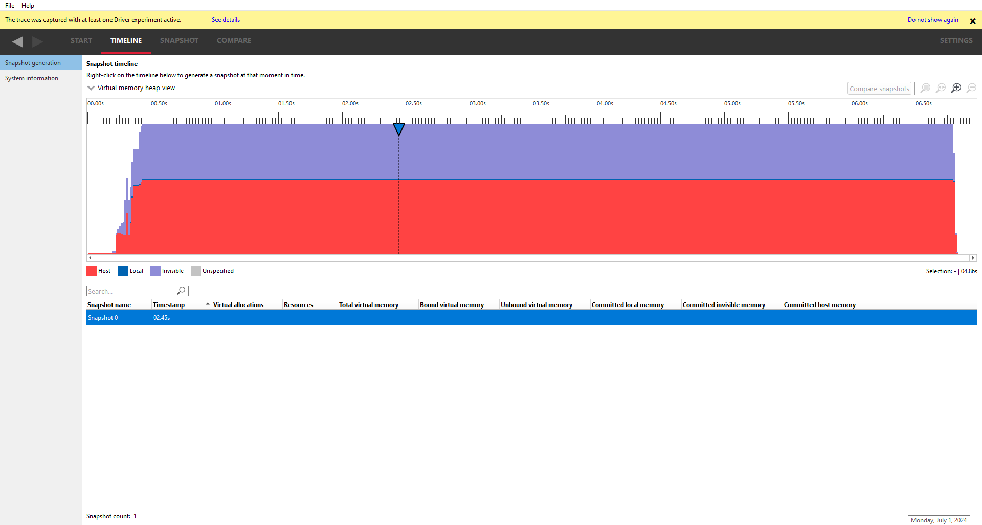 When a memory trace that includes Driver experiments is loaded, a notification banner is displayed below the main drop down menu.