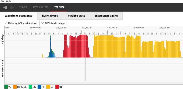 Radeon™ GPU Profiler (RGP) v1.9 adds support for AMD Radeon™ RX 6000 Series graphics cards, bringing with it DirectX® Raytracing support. There’s also reduced overhead and memory usage when collecting instruction timing data, and improved performance when loading and navigating in the instruction timing pane.